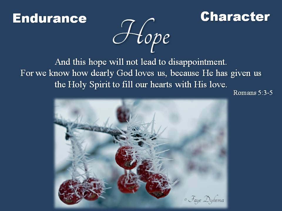 We can rejoice, too, when we run into problems and trials, for we know that they help us develop endurance. And endurance develops strength of character, and character strengthens our confident hope of salvation. And this hope will not lead to disappointment. For we know how dearly God loves us, because He has given us the Holy Spirit to fill our hearts with His love. – Romans 5:3-8