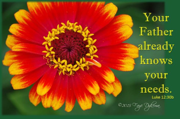 Rest in the knowledge that God already knows all about your needs and He cares completely for you. Surrender your hearts to Him. Trust in Him. Wait on Him.